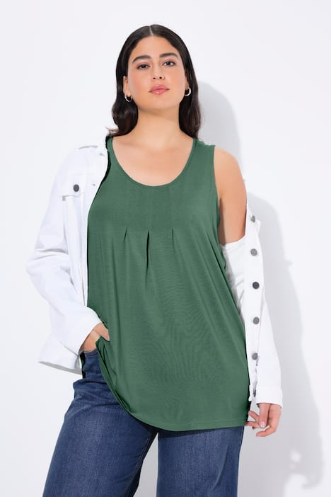 Top, Zierfalten, A-Linie, Rundhals, ärmellos, Modal