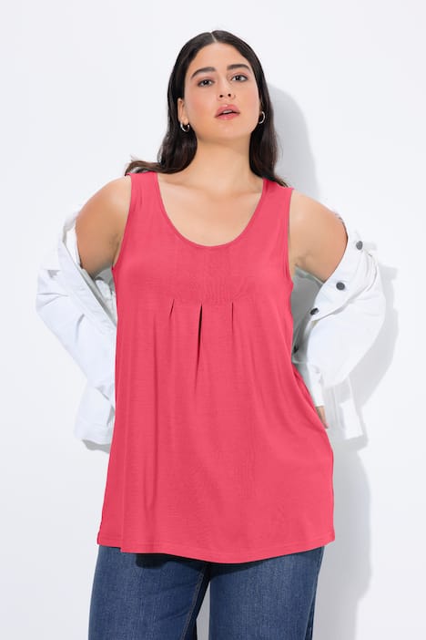 Top, Zierfalten, A-Linie, Rundhals, ärmellos, Modal