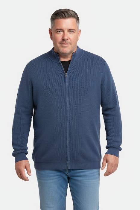 Boston Park Strickjacke aus weichem Baumwoll-Strick mit feiner Struktur. Angesagter Vintage Look durch Acid Wash. Bequeme Passform mit Stehkragen. Boston Park - stilvoll in jeder Größe. Unsere neue, komplett überarbeitete Passform wird dich überzeugen.