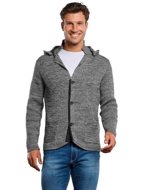 Wie ein treffen unter Freunden! Dürfen wir vorstellen? Unser Strick-Highlight. Ein perfekter Ersatz für Sakko, Strickjacke, Pullover oder Jacke. Eine feine Struktur sorgt bei diesem Stricksakko für eine sportive und lebendige Optik. Mit der lässigen Kapuze und einem weißen Basic-Shirt, wird dieses Sakko garantiert zu einem Blickfang.