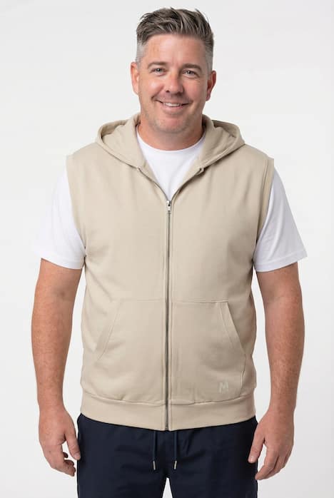 Men+ Sweat-Kapuzenweste aus sportivem Baumwoll-Sweat. Bequem geschnitten mit Kapuze, Kängurutasche und Zipper. Rippbündchen. Men+ - Mode für Männer in jeder Größe. Unsere neue, komplett überarbeitete Passform wird dich überzeugen.