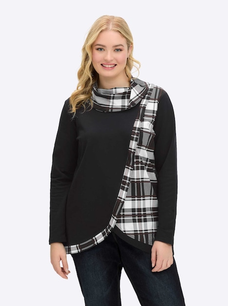 Die Mischung macht den Look! Dieses Sweatshirt kombiniert gekonnt einfarbige Partien mit karierten Jersey-Einsätzen am modisch weiten Kragen, im Vorderteil und an der abgerundeten Kante vorne. Ärmel und Rückteil in Uni. In lässiger, etwas längerer Form.