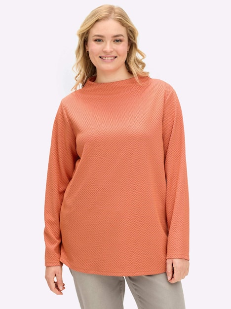 Sweatshirt mit Jacquardmuster. Die Fischgrät-Optik lässt eine bewegte Oberflächenstruktur entstehen. Ein formschöner Kelchkragen sowie ein leicht gerundeter Saum ergänzen den modischen Look.