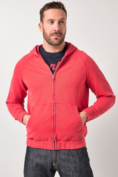 JP1880 Sweatjacke. Weicher und wärmender Sweat mit Kapuze, Zipper und Kängurtasche. Angesagter Vintage Look durch Acid Wash. Raglanärmel. Optimale Bewegungsfreiheit in jeder Größe garantiert. JP1880 - for real men only!