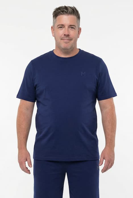 Men+ Schlafanzug - hochwertige Basic-Qualität. Kurzer Zweiteiler aus weichem Jersey. T-Shirt mit Rundhalsausschnitt und Halbarm. Shorts mit Elastikbund, Kordel und seitlichen Taschen. Men+ - Mode für Männer in jeder Größe. Unsere neue, komplett überarbeitete Passform wird dich überzeugen.