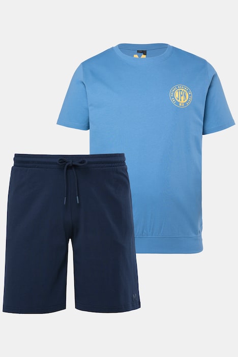 Men+ Schlafanzug, kurzer Zweiteiler aus weichem Jersey. Shirt, Halbarm, mit print und Rundhalsausschnitt. Shorts mit Bauchfit: Leibhöhe und Verschlussleiste sind verkürzt, nichts drückt oder engt ein. Perfekter Tragekomfort für echte Kerle mit Bauch. Elastikbund mit 2 Taschen. Men+ - Mode für Männer in jeder Größe. Unsere neue, komplett überarbeitete Passform wird dich überzeugen.