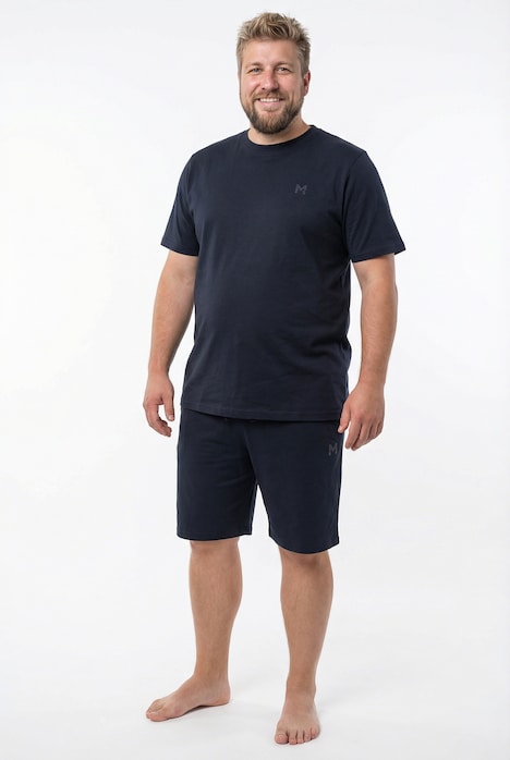 Men+ Schlafanzug - hochwertige Basic-Qualität. Kurzer Zweiteiler aus weichem Jersey. T-Shirt mit Rundhalsausschnitt und Halbarm. Shorts mit Elastikbund, Kordel und seitlichen Taschen. Men+ - Mode für Männer in jeder Größe. Unsere neue, komplett überarbeitete Passform wird dich überzeugen.