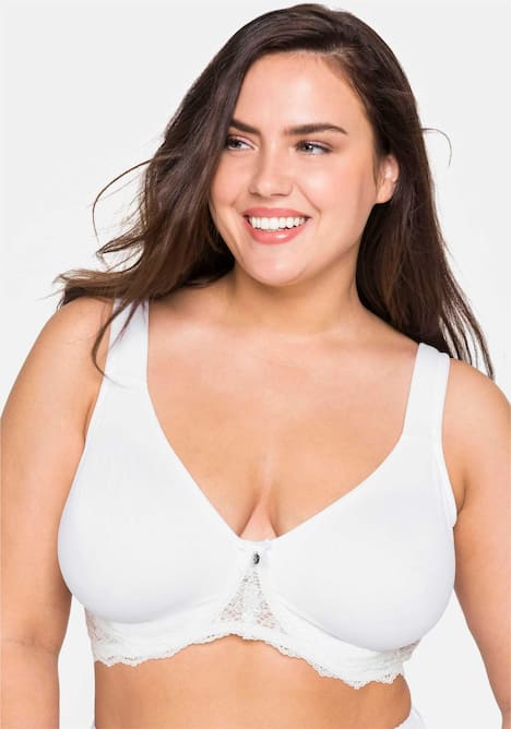 BH mit Bügeln. Breite, wattierte Träger entlasten die Schultern und sorgen für Tragekomfort. Auch die seitlichen Stützen geben optimalen Halt. Die Cups sind nahtlos und doppellagig gearbeitet, die Spitze sorgt für eine verspielte Note.