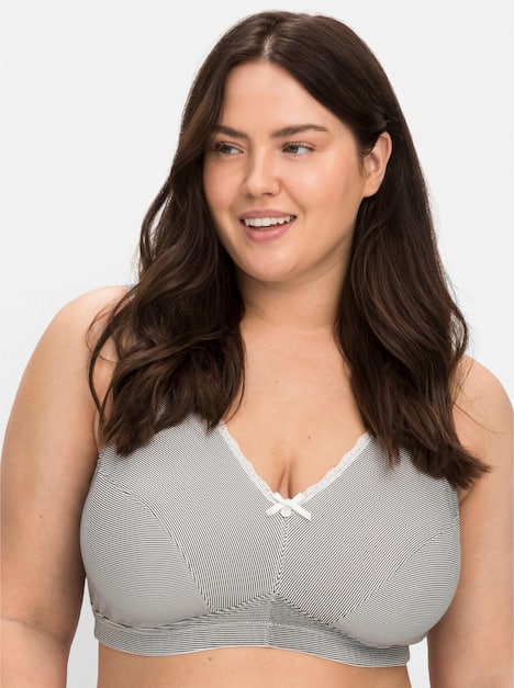 Bügellose BHs im praktischen Doppelpack. Unifarben oder fein gestreift – du hast die Wahl! Die dekorative Spitzenkante am Ausschnitt und eine dezente Zierschleife runden den Look feminin ab. Die breiten wattierten Träger schneiden nicht ein und stützen zusammen mit dem breiten Unterbrustband optimal die Brust. Der hohe Mittelsteg sorgt für eine abdeckende Schnittform und gibt zuverlässigen Halt. Weitere praktische Eigenschaften sind die verstellbaren Träger sowie der verstellbare Rückenverschluss.