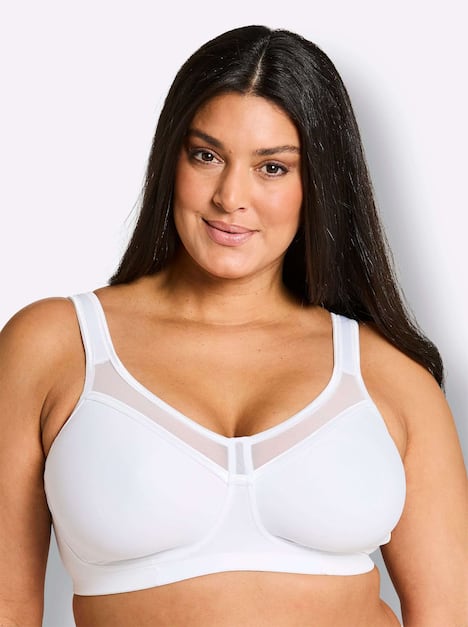 Aus atmungsaktiver Funktions-Qualität, die Ihre Haut trocken hält: T-Shirt-BH ohne Bügel von Miss Mary. Dank der gemoldeten Cups zeichnet sich auch unter enganliegender Kleidung nichts ab. Mit modischem Mesh-Einsatz am Ausschnitt und weich wattierten, im Rücken verstellbaren Komfortträgern.