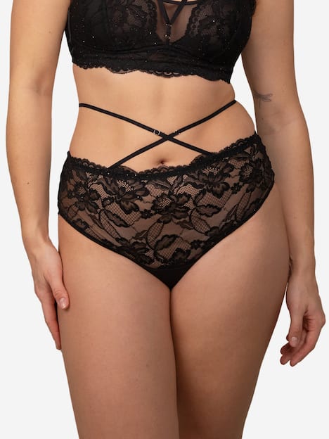 Glam up your curves! Die High Panty Glam aus der exklusiven Glam-Kollektion vereint sinnliche Raffinesse mit glamourösem Statement-Charakter. Feine florale Spitze trifft auf zarte Mini-Pailletten, die bei jeder Bewegung subtil schimmern und dem High Panty einen luxuriösen Glanz verleihen. Der höhere Schnitt umhüllt Deine Silhouette und sorgt für ein optimales Tragegefühl. Ein besonderes Highlight ist der abnehmbare, längenverstellbare Strap, der sich vorne leicht kreuzt und so die Taille elegant betont. Ob als verführerisches Detail oder clean getragen – Du entscheidest über Deinen Look.