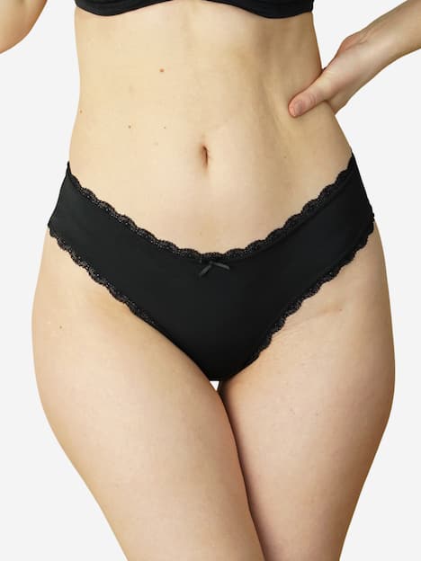 Sinnliches String-Set mit hohem Komfort! Gleich zwei "Basic"-Strings mit schöner Spitzenverzierung am Rand in einem Set. Das Beste: diese Strings sind echte Allrounder und lassen sich zu vielen SugarShape-BHs kombinieren.