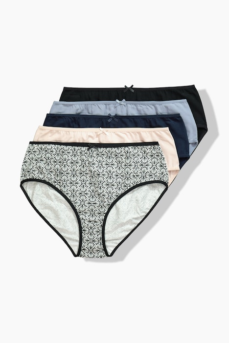Midislips im 5er-Pack. 1x mit Muster, 4x mit passenden Farben. Höher geschnitten, sehr bequem. Bequem und formstabil dank des Elasthan-Anteils.