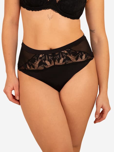 Der Gracy High-String besticht durch seine zarte Spitze und den seidigen Glanz der Mikrofaser. Das breite Bündchen sitzt angenehm und formt eine glatte Linie, während Mesh-Details an den Seiten und ein transparenter Einsatz am Rücken den femininen Look vollenden. Für alle, die feine Eleganz mit einem Hauch Verführung lieben.