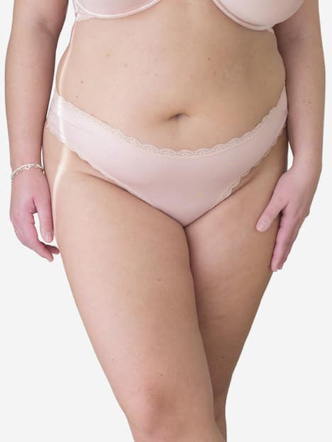 Der String schließt an Bund und Beinausschnitt mit elastischer Spitze ab und schneidet deshalb weder ein, noch zeichnet er sich unter Deiner Kleidung ab.